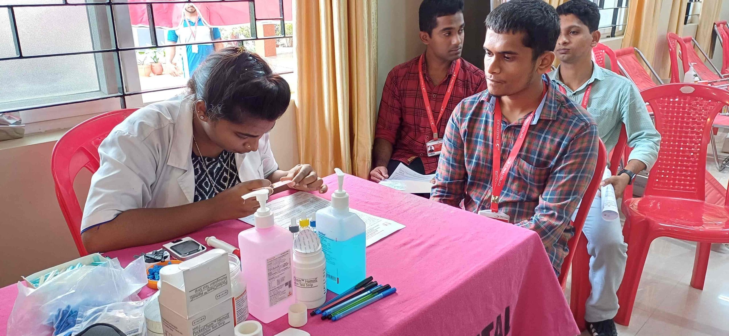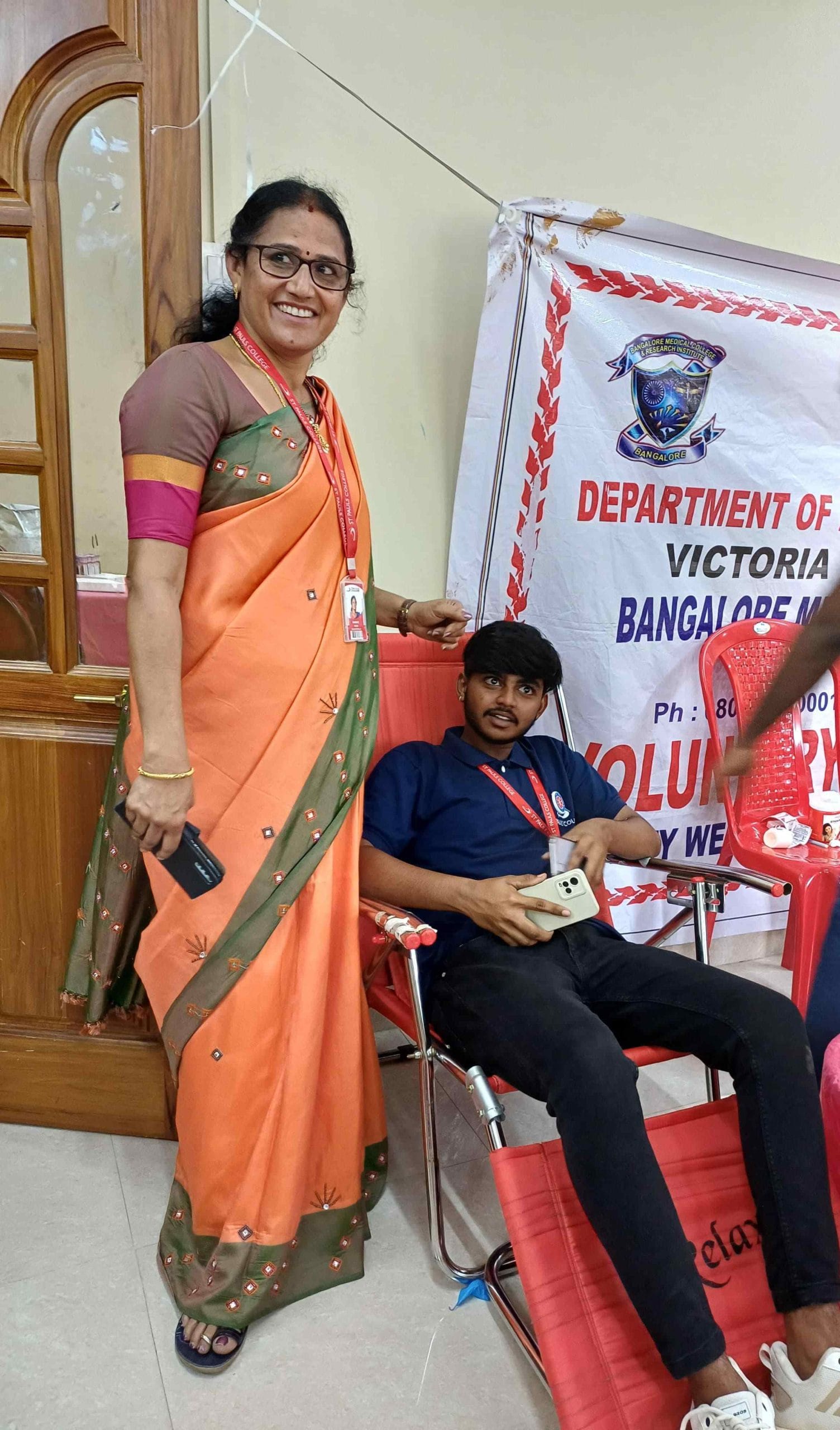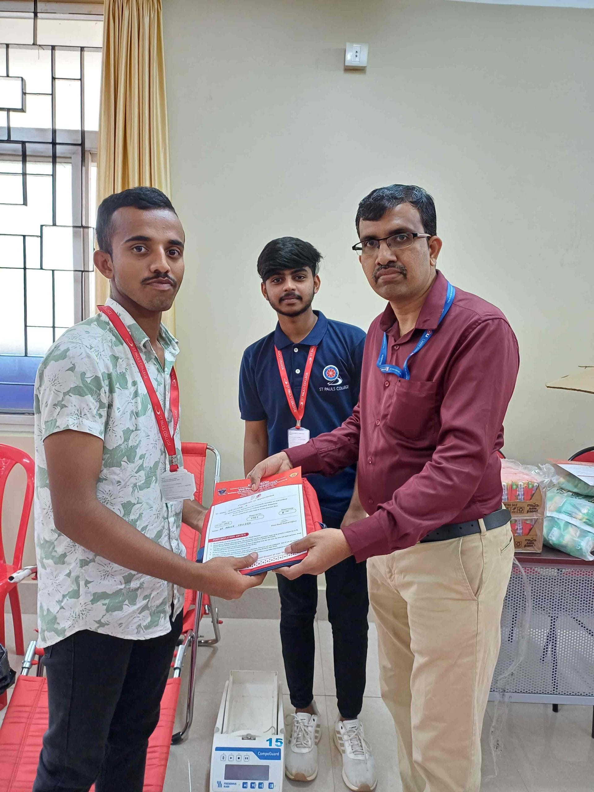 NSS Unit, Health Club & AWEKSHA in association with Blood Bank of Victoria Hospital organised Blood Donation Camp 2023 on 7 December 2023. Dr. Akshatha, Victoria Hospital, Fr. Dr. Thomas M J, Principal, Mr. Gowtham R, NSS Programme Officer, and Ms. Savitrhi C, Health Club Coordinator shared the dais during the inaugural ceremony. The fraternity of Faculty and Students has donated blood to give the right meaning to the objective of the camp, in life-saving through the donation of blood. 57 Units of blood were donated to Blood Bank.