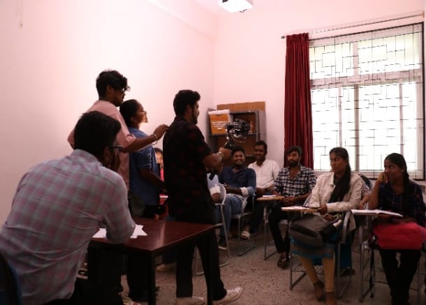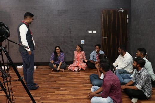 Day 4 of the Multimedia Internship delved into Film Production and its various facets. This day’s session on Pre-Production and Production Techniques conducted by Ms. Ananya N K, explored the different genres and possible aspects of Film Story Building. By understanding the narrative techniques, the interns recalled their favorite works of film that followed the various approaches to film storytelling. The interns also learned Script Writing software and techniques. The second half of the day explored video editing as the interns were shown three short movies and were taught to make teasers using the same.